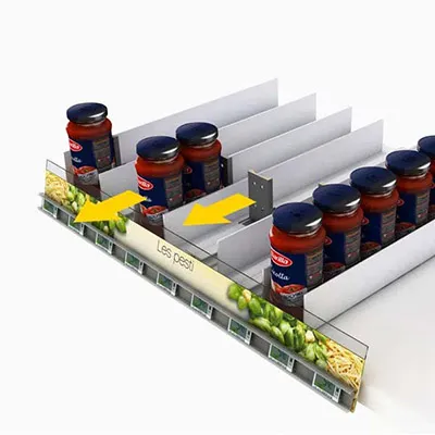Shelf dividers reduce the time spent organizing shelves, ensuring appealing product presentations. Easy